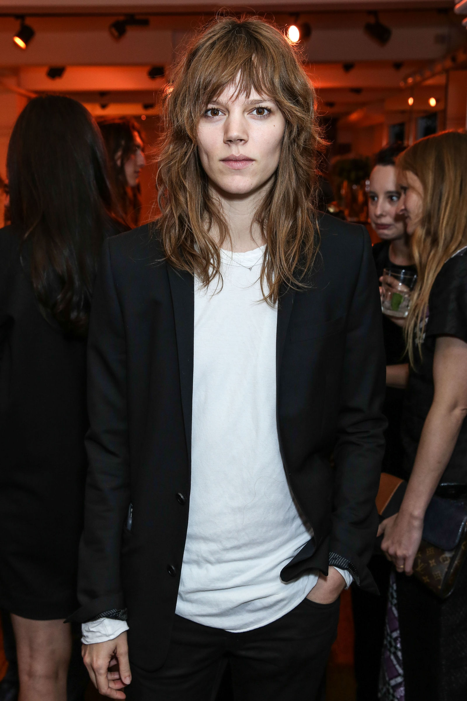Every couple of months I start revisiting the idea of bangs, usually after I catch myself staring at my ever-deepening forehead wrinkles for too long. However, my hair is naturally wavy/curly — the more defined curls are underneath a top layer of wavy frizz — so whenever I wanted bangs in the past, I coordinated them with a Brazilian blowout. I never considered not wearing them straight, but Alia’s imperfect fringe has got me thinking. Her short shag is definitely too hipster for me, but those curly bangs…