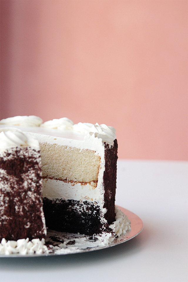 And there you have it! A super fancy professional-looking cake, or as Emily calls it, “a Wednesday kind of cake.”