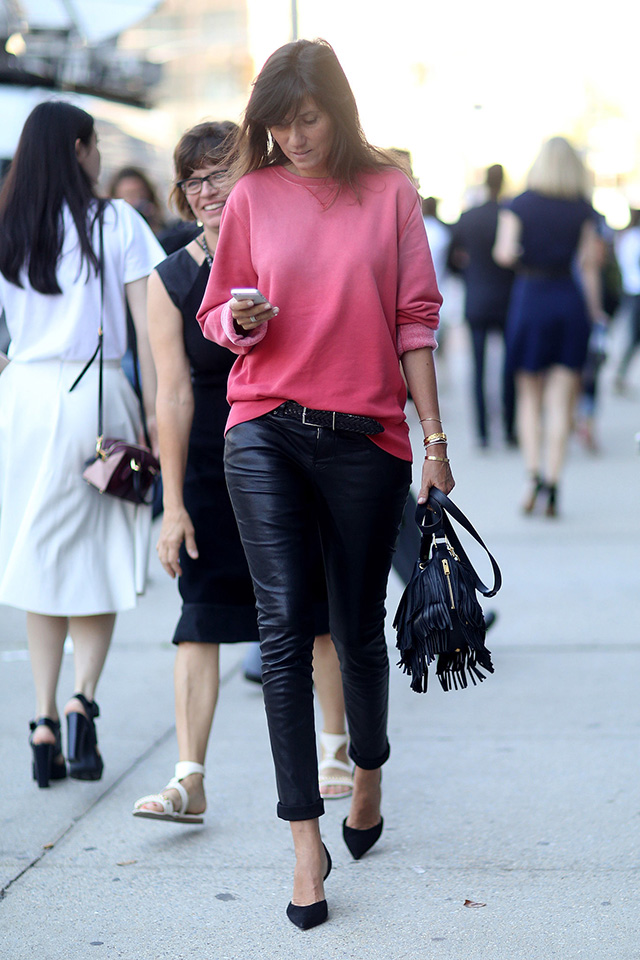 Based on personal experience — and the photos above — I say it’s totally possible to look chic in a sweatshirt. The trick is to find one that’s simple in design (I prefer mine slouchy yet slim-fitting) with one eye-catching detail. A twist of fabric, contrasting trim, or bold typography would do the trick.