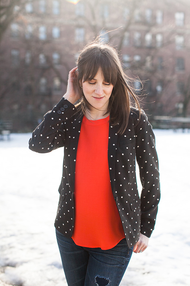 We shot the photos in my sister’s New York City neighborhood. I was worried I’d feel terribly self-conscious posing for the camera in public, but Meg quickly put me at ease. Plus, my photography session didn’t seem to phase the busy New Yorkers around me. Nobody acted particularly curious or interested in what we were doing.