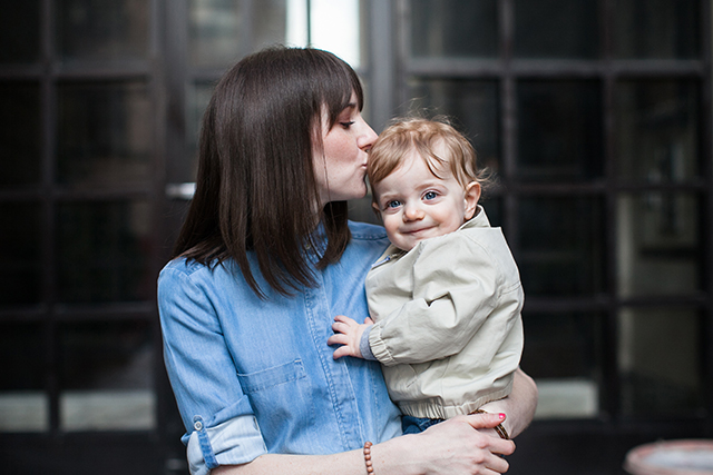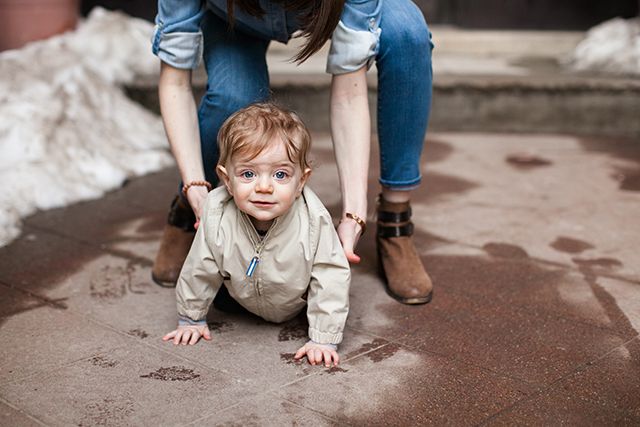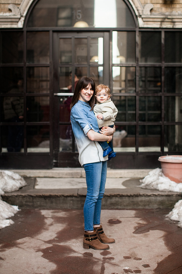 Although I had to laugh when I read the interview with Jen of The Effortless Chic from two weeks ago. She was also wearing a denim on denim outfit! For a hot second, I worried that I might be accused of copying her style, but Megan Tsang took the photos for my feature on a chilly morning in early March about two weeks prior. I guess my Secrets of Stylish Moms post simply reinforces the idea of chambray shirt and jeans as the perfect momiform.