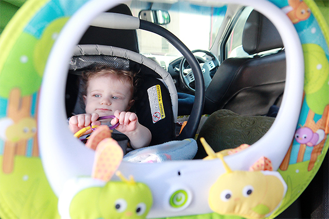 If your children are going to eat or drink in their car seats, I recommend car seat guardians to protect your cushions from inevitable snack-tastrophes like crumbs and spills. (Used regularly, they can also help prevent compression damage.) Also, an auto mirror that provides a clear, wide-angle view of your rear-facing infant will give you peace of mind — and reduce strain on your neck from trying to see behind you.