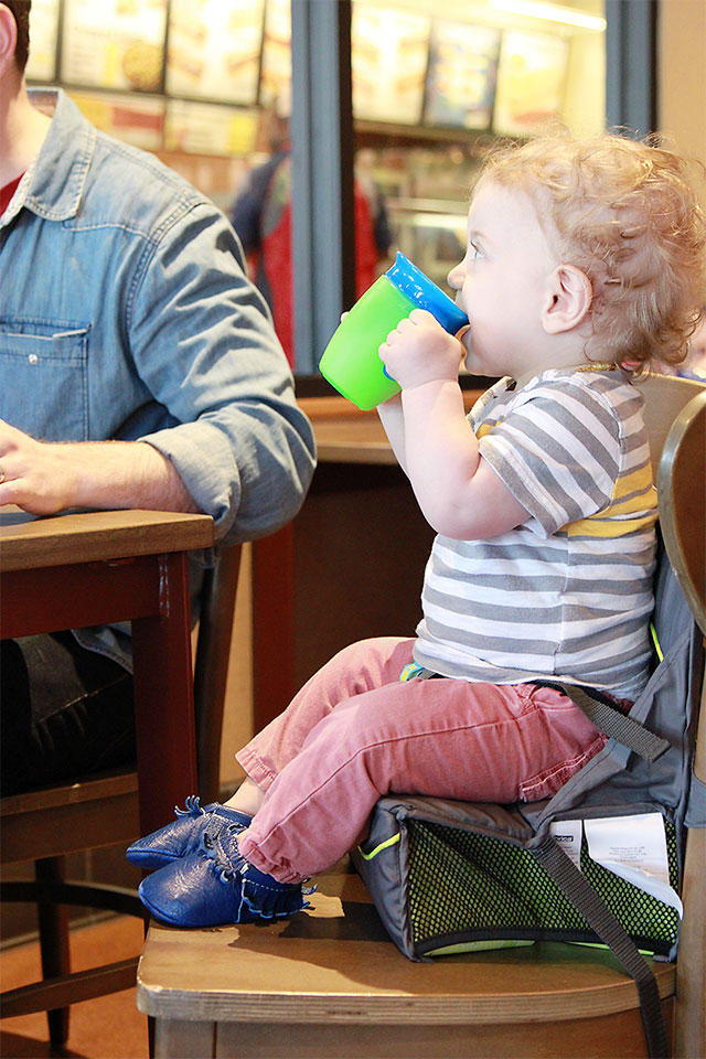 That’s “Bring Your Own Booster.” If you pick a popular kid-friendly restaurant, there may not be any available high chairs. (And if you stop to eat at Starbucks, you might not find any, period.) Honestly, our foldable travel booster saved the day more than once.